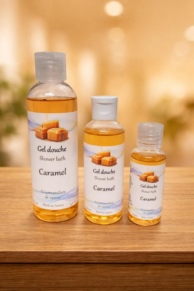 Gel douche caramel: INGREDIENTS : AQUA (WATER), COCAMIDOPROPYL BETAINE , COCO]GLUCOSIDE, SODIUM CHLORIDE, PARFUM (FRAGRANCE), DISODIUM LAURYL SULFOSUCCINATE, GLYCERIN, CITRIC ACID, GLYCERYL OLEATE, SODIUM BENZOATE, POTASSIUM SORBATE, TOCOPHEROL, HYDROGENATED PALM GLYCERIDES CITRATE, , CITRAL, CITRONELLOL, GERANIOL, FARNESOL , LIMONENE, LINALOO